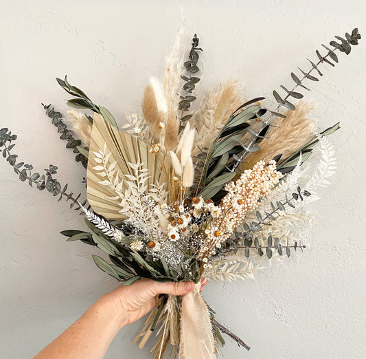 Nude, Light Mocha, and Cream Garden Rose + Peony Pampas Grass Dried Floral Bouquet/ Wedding Flowers/ Bride and Bridesmaids Bouquets