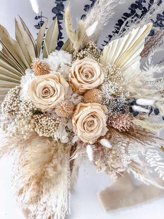 Blush Dahlia, Nude Rose + Greenery Dried Floral Bouquet with Silk Faux Dahlias/ Wedding Flowers/ Bride and Bridesmaids Bouquets