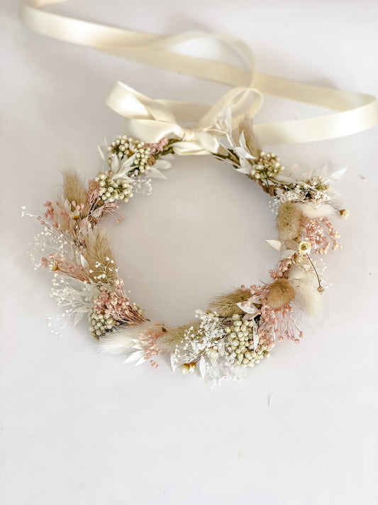Blush Dried Flower Crown/ Wedding Hair/ Bride and Bridesmaids/ Flower Girl/ Photoshoot
