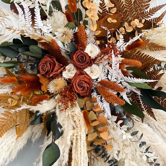 Rust, Terracotta, + Eucalyptus Dried Flower Arch Wall Decor, Backdrop, Dried Flowers, Arbor