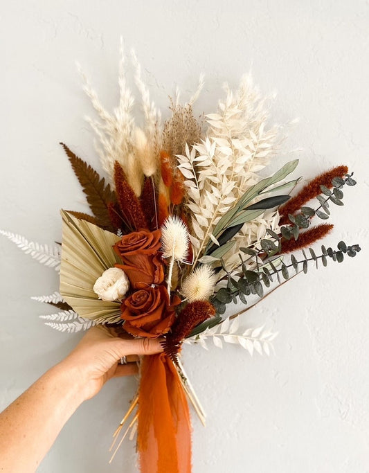 Small Olive + Rust Pampas Grass Bouquet/ Bride and Bridesmaids/ Dried Flower Bouquet/ Wedding Flowers