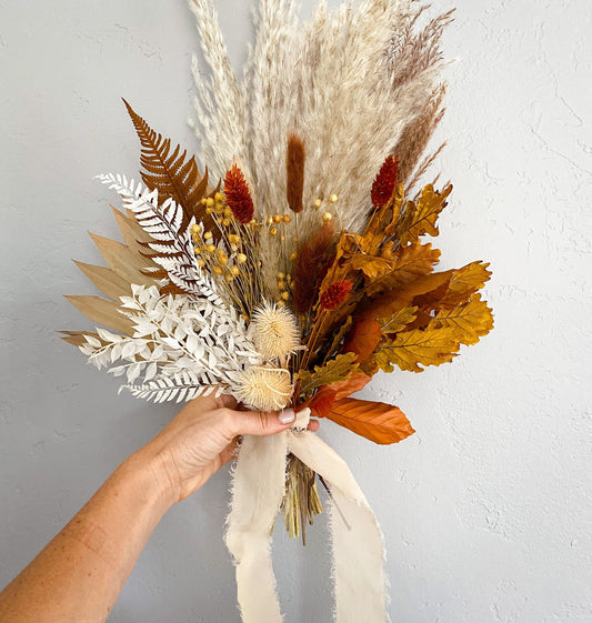 Small Pampas Grass + Fall Leaf Bouquet/ Bride and Bridesmaids/ Dried Flower Bouquet/ Wedding Flowers