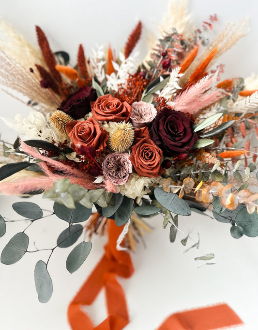 Terracotta, Burgundy + Dusty Rose Dried Floral Bouquet/ Bride and Bridesmaids/ Dried Flower Bouquet/ Wedding Flowers