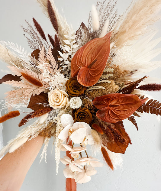 Terracotta, Blush + Toffee Anthurium Pampas Grass Bouquet/ Bride and Bridesmaids/ Dried Flower Bouquet