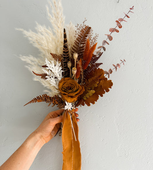 Small Fall Pheasant Feather + Pampas Grass Bud Vase Arrangement