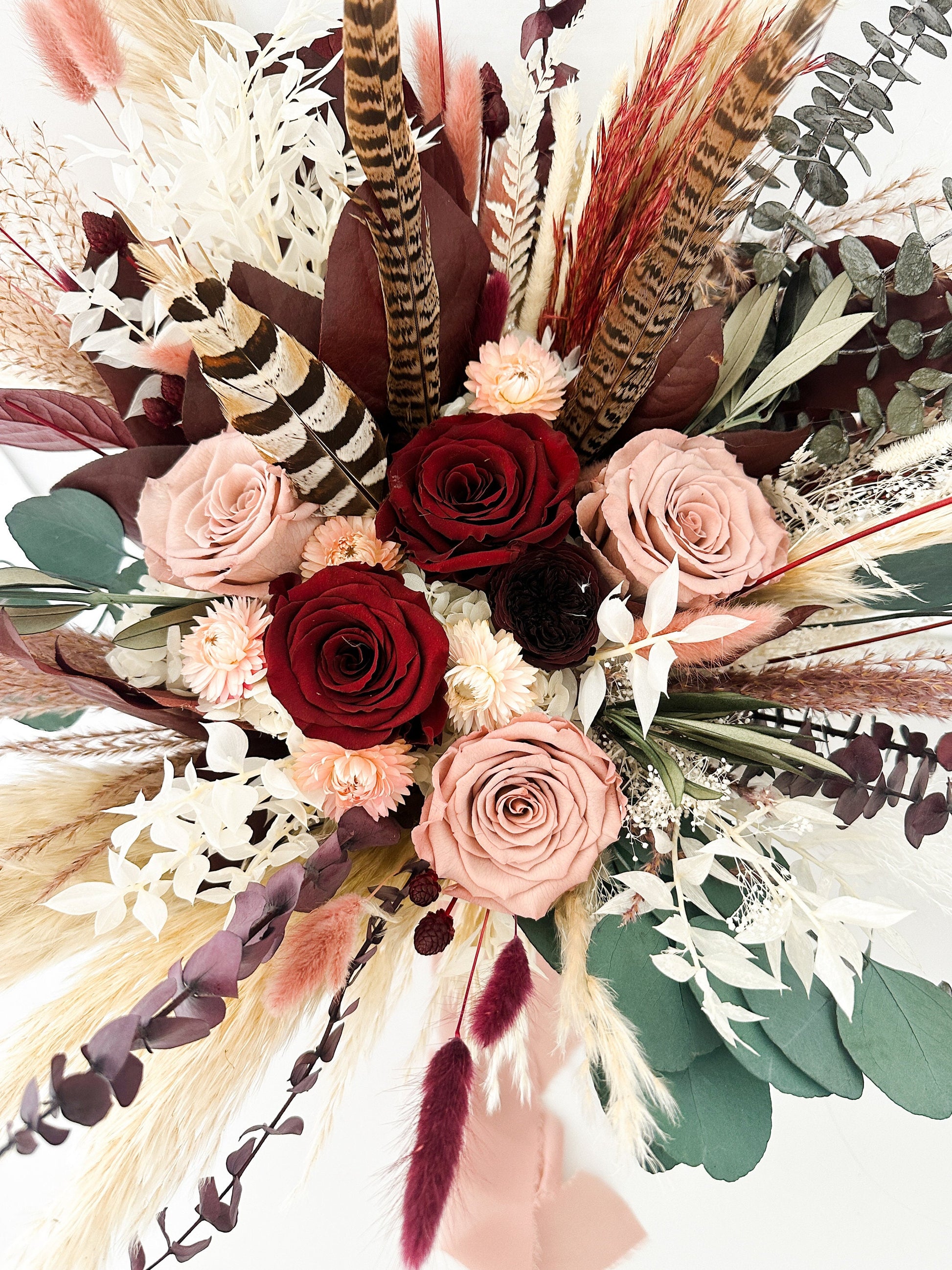 *Each arrangement is handmade with the same components however each of them are arranged slightly different. The colors and size may vary from one to another since they are dried and preserved flowers
