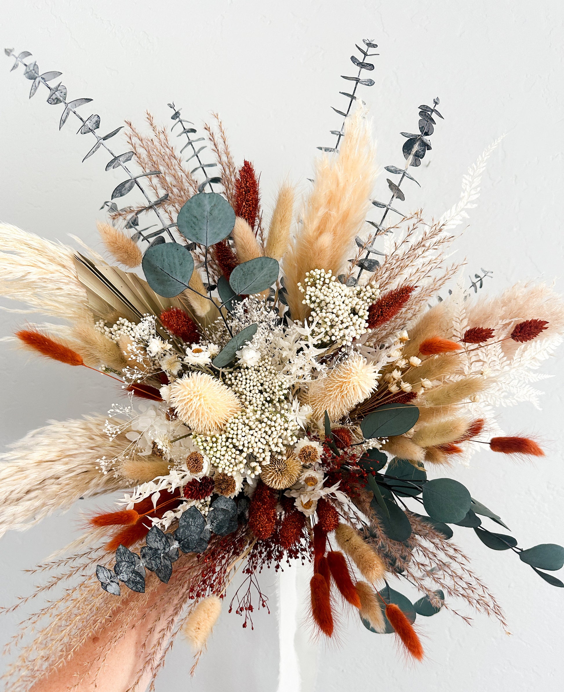 Medium Rust, Terracotta + Eucalyptus Wildflower Bouquet/ Bride and Bridesmaids/ Dried Flower Bouquet/ Wedding Flowers
