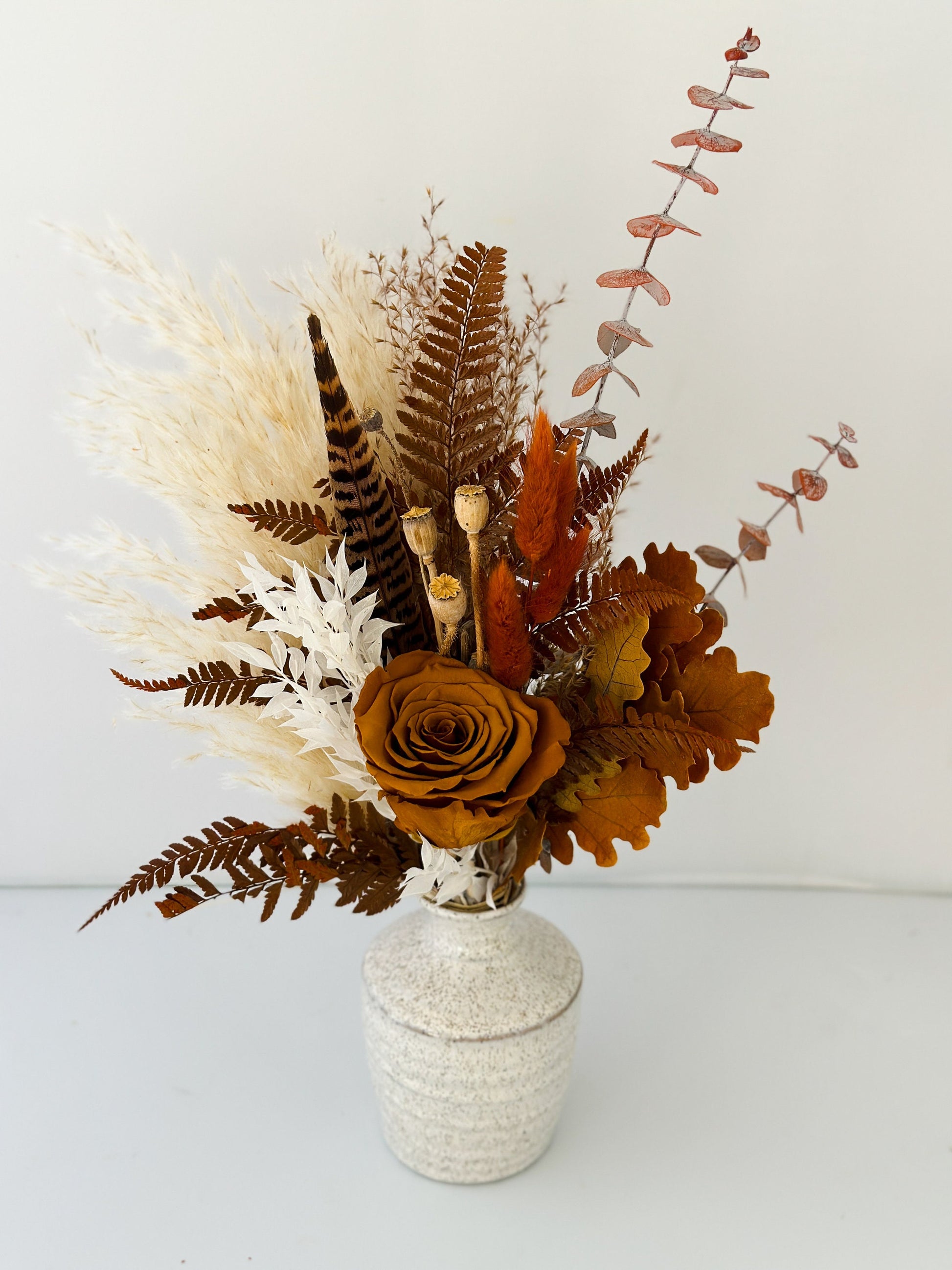 *Each arrangement is handmade with the same components however each of them are arranged slightly different. The colors and size may vary from one to another since they are dried and preserved flowers