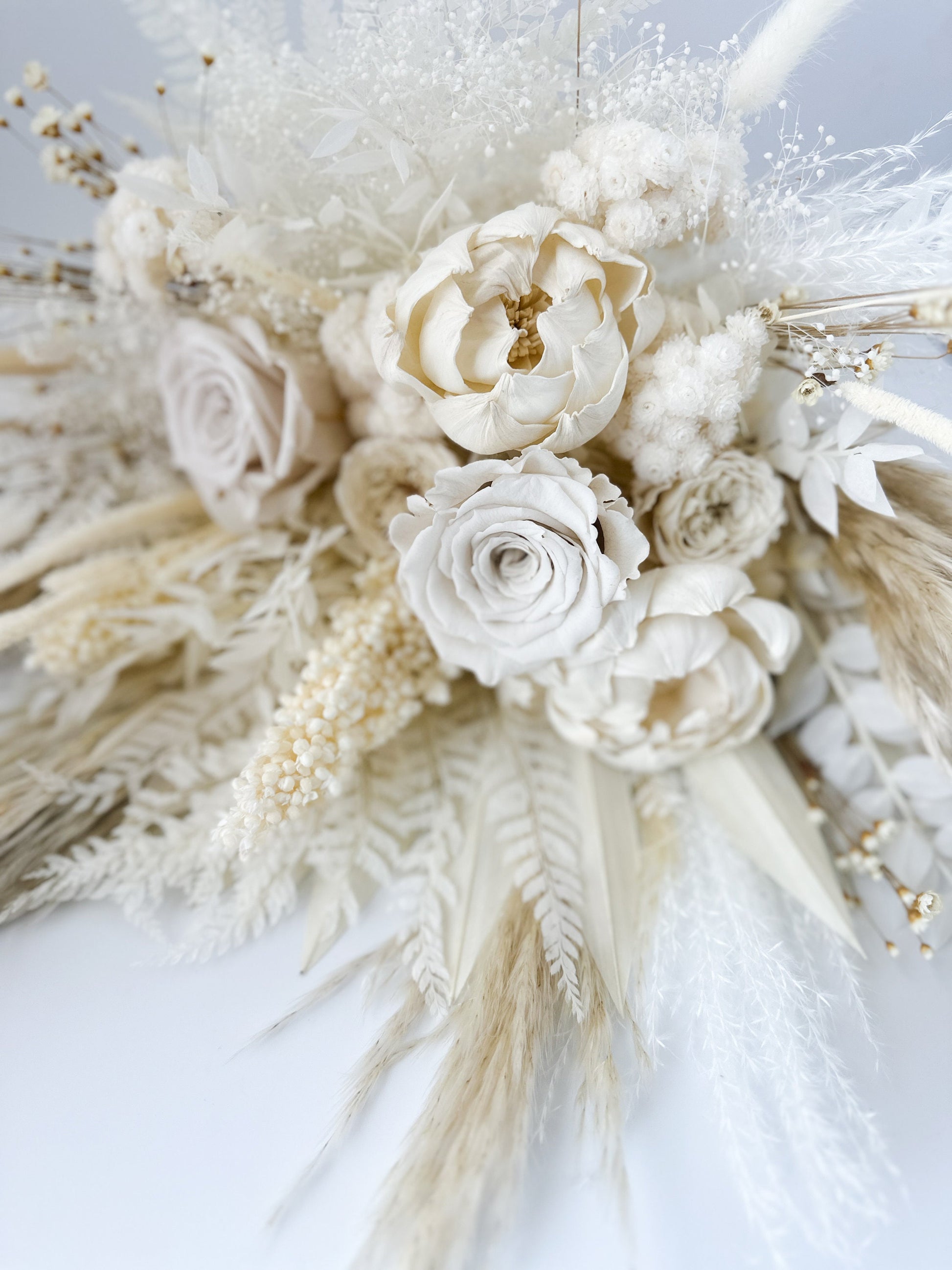 White Peony + Rose Dried Floral Bouquet/ Bride and Bridesmaids/ Dried Flower Bouquet/ Wedding Flowers